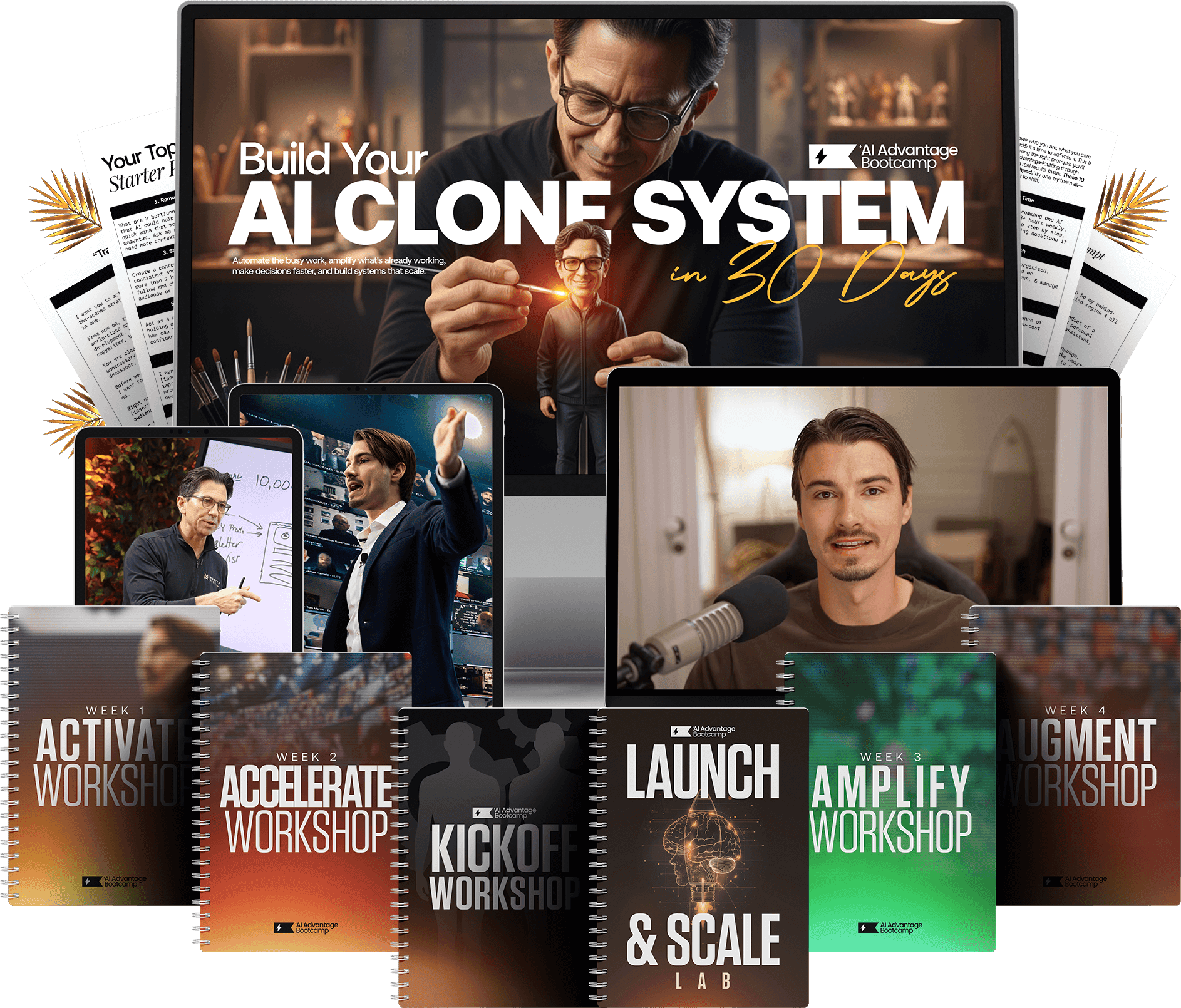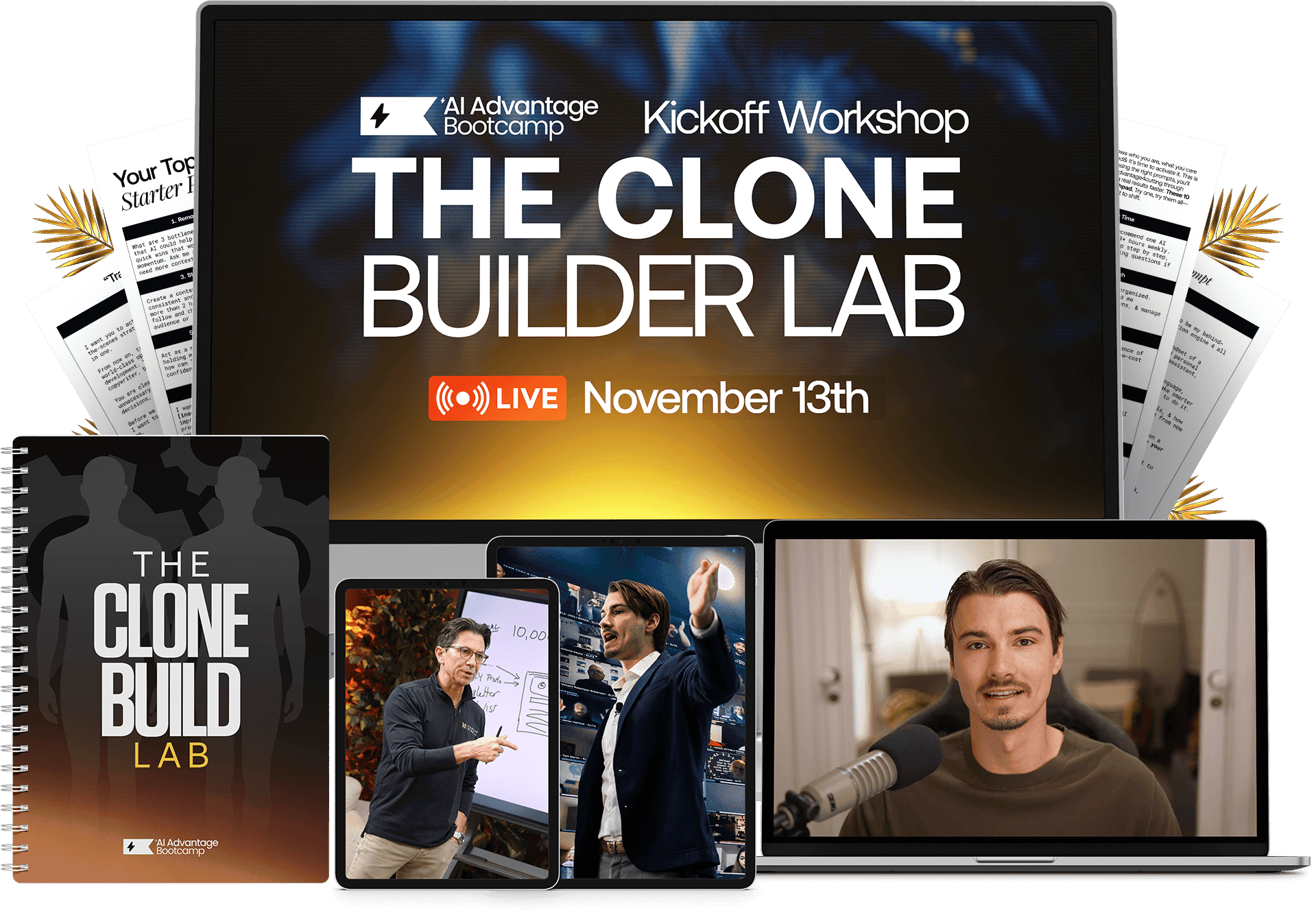Join AI Advantage Bootcamp to build your personal AI Clone System, save hours weekly, and multiply output with simple, guided, 30-day experience.