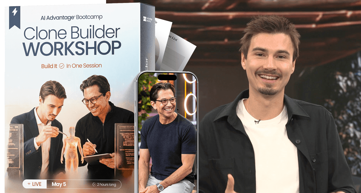 Join AI Advantage Bootcamp to build your personal AI Clone System, save hours weekly, and multiply output with simple, guided, 30-day experience.